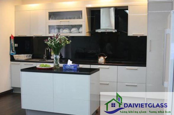 Một số mẫu kính ốp tường bếp màu đen thực tế: